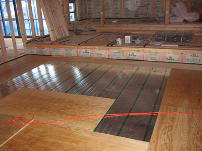 7月24日(月)、広前部分の床暖房設備の取り付けが行われた。