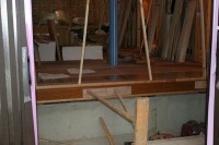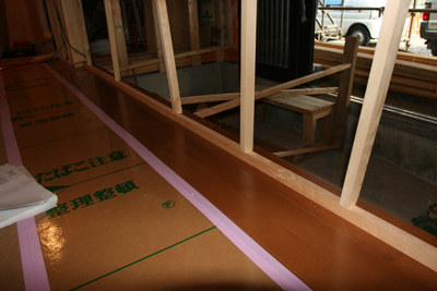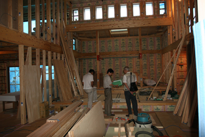HOME > 教会移転 > 教会移転 建築状況 2006/08/30 8月30日(水)、神殿、霊殿部分の構造について、設計者等を交えて現地で打ち合わせが行われた。玄関口には、フローリングが張られていました。