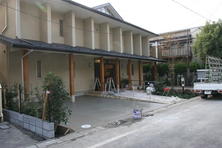 HOME > 教会移転 > 教会移転 建築状況 2006/10/30 10月30日(月)、新しい神饌案、玉串案等の神具搬入が行われた。 建物内部は、明後日の引き渡しに向けて、最終的な配線作業や室内クリーニングが行われて、外回りは駐車スペースのコンクリート打ちが行われていた。