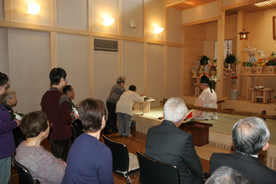 HOME > おひろまえ > おひろまえ 春のみたま祭 執行 2007/03/21 3月21日(春分の日)午後1時から、教会長ご祭主のもと春のみたま祭が仕えられ、親・先祖のお霊様方に玉串を捧げた。 祭典後、ご神前をバックに記念写真、参拝者へのお下がり品の分配などが行われ、その後、直会がにぎやかに行われた。