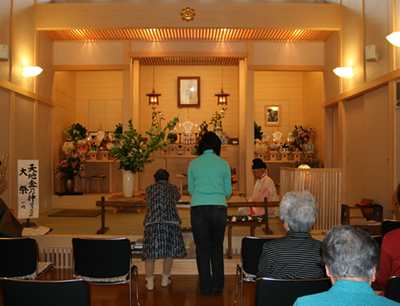 HOME > おひろまえ > おひろまえ 天地金乃神大祭 奉行 2007/04/23 4月22日(日)午後1時から、教会長ご祭主のもと、天地金乃神大祭が仕えられ、広大無辺の天地の親神様のお恵みにお礼を申し上げるとともに、ご神願成就のお役に立たせて頂きたいとの祈りを込め、参拝者一人ひとりが玉串を捧げた。 また、4月24日が初代白神先生のご命日であることから、初代白神先生拝詞を奉唱した。