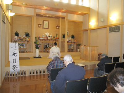 1月1日(元日)、正午から副教会長のご祭主のもとに元日祭が仕えられ、新たな年を迎えた感謝と今年一年の無事健康を祈願した。