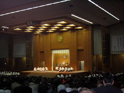 HOME > おひろまえ > おひろまえ 布教功労者報徳祭 2007/12/09 12月9日(日)、金光教本部祭場にて、教主金光様ご祭主のもとに布教功労者報徳祭並びに金光正神金吉君100年祭及び金光田保子姫20年祭が仕えられた。 当教会からは、副教会長夫妻が参拝し、歴代金光様をはじめ、お道の布教に尽力されたご霊神様方のお徳をしのび、そのご功績をお讃えした。