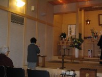 HOME > おひろまえ > おひろまえ 上加世田家 命日の御祈念 2008/01/12 1月12日(土)、この日は副教会長夫人の父(上加世田謙蔵氏)の6年目の命日にあたり、午後2時からの定時の御祈念にあわせ、御霊前にて玉串を捧げた。