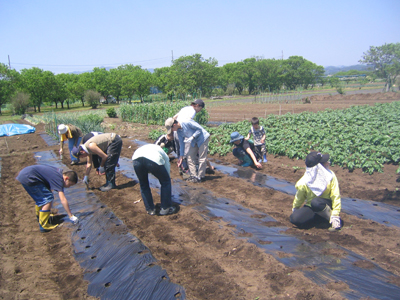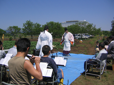 HOME > 雑記 > みのり > みのり 雑記 農作業体験~みのり~鍬入れ祭 2008/05/06 5月6日、みのり実行委員会主催のとうもろこし、里芋の植え付け作業が行われ、副教会長夫妻が参加した。 作業前には、豊作と一年の作業の無事を祈願させていただく鍬入れ祭が仕えられた。 みのり公式ページ