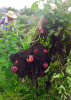 HOME > 雑記 > みのり > みのり じゃがいもの収穫に参加 2015/06/27 6月27日(土)、副教会長夫妻はみのり実行委員会主催のじゃがいもの収穫作業に参加した。 雑草抜きの作業の後、3種のじゃがいも(アンデス・メークイン・キタアカリ)を収穫した。 収穫後は、おにぎりや豚汁、堀りたてのジャガイモを頂いた。