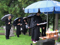 HOME > おひろまえ > おひろまえ 50日祭・納骨祭仕えられる 2015/08/30 8月30日(日)、先月11日にご帰幽になられた信奉者の50日祭が当教会広前で、納骨祭が都営八王子霊園でそれぞれ仕えられた。 親先祖の御霊さまと共に、ここからの御霊としてのお働きと立ち行きに祈りを込めた。