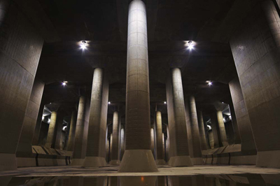 この春日部市には、首都圏外郭放水路、通称:地下神殿とよばれるものがある。これは、あふれそうになった中小河川の洪水を地下に取り込み、地下50mを貫く総延長6.3㎞のトンネルを通して江戸川に流す、世界最大級の洪水防止施設だそうだ。とはいえ、そこにたどり着くまでの下水設備がきちんと整っていないと、すぐに雨水があふれてしまうのだろう。