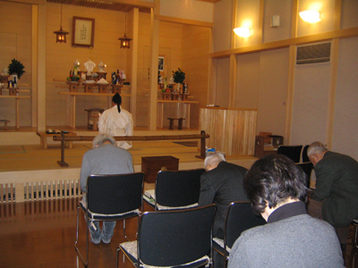 HOME > おひろまえ > おひろまえ 生神金光大神様月例祭 2009/02/09 2月9日(月)午後2時から、生神金光大神様月例祭が副教会長祭主のもとにご奉仕された。 祭典後、ご伝記『金光大神』、教典抄『天地は語る』からは、第107、108節を参拝者と共に拝読させて頂いた。 天地は語る ―金光教教典抄― 第107節 真の道をいく人は、肉眼をおいて心眼を開けよ。 第108節 わが心でわが身を生かすこともあり、殺すこともある。