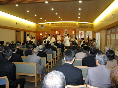 HOME > おひろまえ > おひろまえ 初代白神先生127年祭 参列 2009/04/25 4月24日(金)、大阪教会において、初代白神先生127年祭が執り行われ、副教会長が参列し、手長のご用を頂いた。 祭典後、金光学園幼稚園園長の高橋行地郎先生から「だまっておれない」との講題のもと、お話を拝聴した。