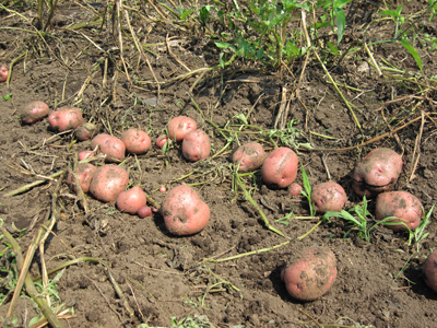 HOME > 雑記 > みのり > みのり みのり~じゃが芋の収穫 2009/06/27 6月27日(土)、副教会長はみのり実行委員会主催のじゃが芋の収穫に参加した。 年配の方から子どもまで、十数名が集まり、アンデス、メークイン、男爵、キタアカリの4種のじゃが芋を収穫した。 なお、7月26日には、とうもろこしの収穫を予定している。 写真上はアンデス。写真下はとうもろこし畑。