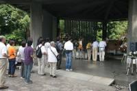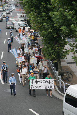 HOME > おひろまえ > おひろまえ 東京平和集会に参加 2009/07/19 7月19日(土)、第27回金光教東京平和集会が金光教館(東京教会)で開催され、副教会長が参加した。 ペシャワール会事務局長の福元満治氏の講演の後、千鳥ヶ淵戦没者墓苑に向けて平和行進。同墓苑にて祈りのつどいが行われた。 写真は参加者全員による献花。 千鳥ヶ淵戦没者墓苑に向かって平和行進する参加者等。