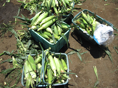 HOME > 雑記 > みのり > みのり 雑記 みのり~とうもろこしの収穫 2009/07/26 7月26日(日)、副教会長夫妻はみのり実行委員会主催のとうもろこしの収穫作業に参加した。 さつまいも畑の雑草抜きをした後、今回のメインのとうもろこしの収穫を行った。 育ち不足もあったため、すべての収穫は無理であったが、それでも写真下のようにたくさんのとうもろこしを収穫することができた。残りは、後日収穫する予定になっている。 少し早めに現地に到着したので、近くの農園でブルーベリーの摘みとりもしてみました。
