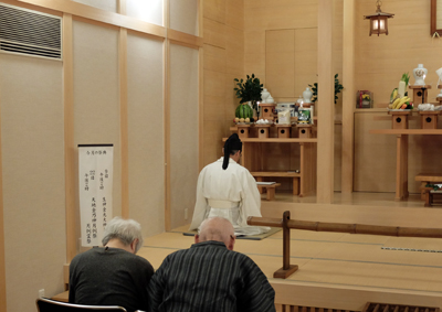 HOME > おひろまえ > おひろまえ 天地金乃神月例祭・月例霊祭 2019/06/23 6月22日(土)、午後2時から教会長祭主のもとに天地金乃神月例祭・月例霊祭が仕えられた。 この月に祥月命日をお迎えする11柱のご霊神のご功績を称えると共に、それぞれの家の守りのみたまとしてお働きに御礼の玉串を供えた。