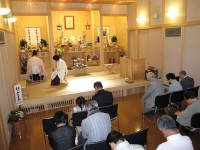 HOME > おひろまえ > おひろまえ 秋の御霊まつり 2009/09/23 9月23日(秋分の日)正午から、副教会長ご祭主のもとに秋の御霊まつりが仕えられ、親・先祖の御霊様方にここまでの御礼とここからの立ち行きを願い、玉串を捧げた。 祭典後、信徒会から敬老のお祝いの品が手渡され、お下がり品の分配などが行われ、その後、直会がにぎやかに行われた。