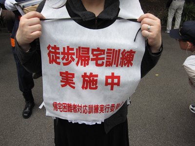 HOME > おひろまえ > おひろまえ 首都圏統一帰宅困難者対応訓練 2009/09/26 9月26日(土) 、東京災害ボランティアネットワーク主催の首都圏統一帰宅困難者対応訓練が開催された。 本教からは7名が参加し、日比谷公園から練馬の光が丘公園までの東京コース、日比谷公園から埼玉県の川口駅までの埼玉コースに分かれて約20キロ程度のコースを体験した。 当教会からは、副教会長夫妻が埼玉コースに参加し、およそ5時間半かけて川口駅に到着した。