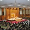12月22日(火)、教会長祭主のもとに天地金乃神月例祭・月例霊祭が仕えられ、今月祥月命日を迎えた22柱のみたま様に御礼の玉串を供えた。祭典後、「天地は語る」「令和版お道案内」を拝読した。