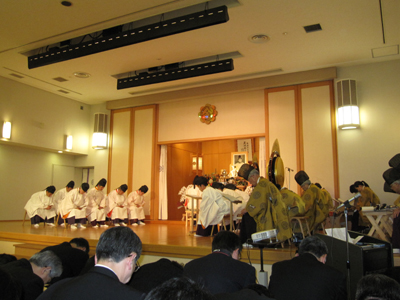 HOME > おひろまえ > おひろまえ 大阪教会初代教会長・二代白神先生百年祭に参拝 2010/04/11 4月11日(日)、大阪教会において、大阪教会初代教会長・二代白神先生百年祭が仕えられ、副教会長夫妻等が参拝した。 前日の本部広前・天地金乃神大祭参拝後、新大阪で宿泊し、午前中は初代白神先生をはじめとする大阪教会奥城、当教会初代教会長・御園先生奥城を参拝し、午後2時からの祭典に参拝した。