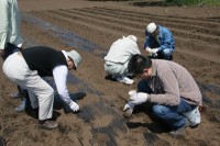HOME > 雑記 > みのり > みのり 雑記 とうもろこしと里芋の植え付け 2010/05/15 5月15日(土)、みのり実行委員会の農作業が行われた。 この日は、前回の残りのとうもろこしと里芋の植付けを行った。 じゃがいも順調に生育し、来月26日には早くもじゃがいもの収穫が行われる予定になっている。
