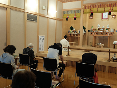 HOME > おひろまえ > おひろまえ 天地金乃神月例祭・月例霊祭 2022/08/22 8月22日(月)、教会長祭主のもとに天地金乃神月例祭・月例霊祭が仕えられ、今月祥月命日を迎えた22柱のみたま様に御礼の玉串を供えた。祭典後、「天地は語る」を拝読した。