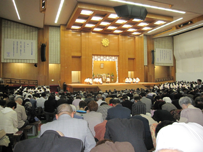 HOME > おひろまえ > おひろまえ 本部広前・生神金光大神大祭に参拝 2010/10/03 10月3日(日)、第2日となる本部広前・生神金光大神大祭が教主金光様ご祭主のもと、本部広前祭場で仕えられ、当教会から副教会長等が参拝した。 前日の2日に金光に到着。本部広前会堂でご祈念の後、教主金光様にお届けし、その後、立教聖場、教祖奥城、歴代教主奥城などを参拝した。そして、3日午前9時半からの祭典に参拝した。