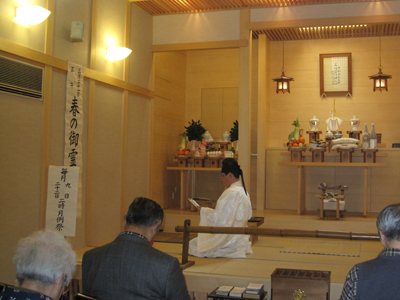HOME > おひろまえ > おひろまえ 天地金乃神様月例祭・月例霊祭 2011/02/22 2月22日(火)、午後2時から天地金乃神様月例祭・月例霊祭が副教会長のご祭主のもとに仕えられた。 祭典後は、金光教教典抄『天地は語る』からみ教えを2節頂き、その後、ご伝記『金光大神』を拝読させていただいた。