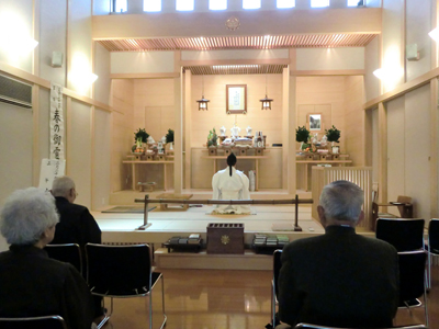HOME > おひろまえ > おひろまえ 生神金光大神様月例祭 2011/03/09 3月9日(水)午後2時から、生神金光大神様月例祭が副教会長祭主のもとにご奉仕された。 祭典後、教典抄『天地は語る』からみ教えを頂き、続いて『お知らせ事覚帳』を拝読させて頂いた。