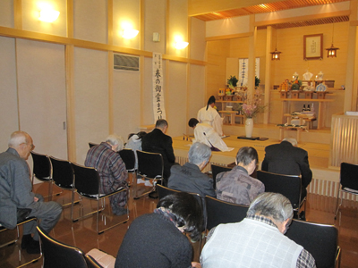 HOME > おひろまえ > おひろまえ 春の御霊まつり 執行 2011/03/21 3月21日(春分の日)、正午から副教会長のご祭主のもと、春の御霊まつりがご奉仕された。 参拝者それぞれ、霊前に進んで親、先祖の御霊さまに玉串をお供えし、今日までの続くいのちの御礼を申し上げた。