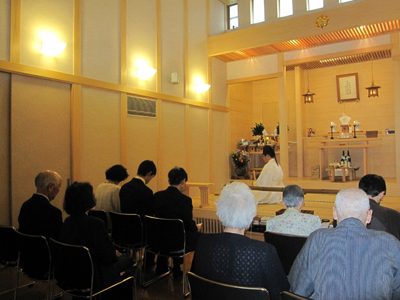 HOME > おひろまえ > おひろまえ 信徒三年祭仕えられる 2011/05/03 5月3日(祝)、午前11時半からご信徒の3年祭が副教会長のご祭主のもとでご奉仕された。 家族親族等それぞれが玉串をお供えし、今日までお守り、お導き頂いたことへの御礼と御霊さまのここからの立ち行きを祈念した。