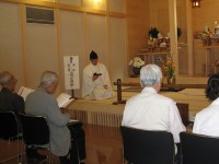 HOME > おひろまえ > おひろまえ 生神金光大神様月例祭 2011/06/09 6月9日(木)、午後2時から副教会長のご祭主のもとに生神金光大神様月例祭が仕えられた。 祭典後、金光教教典抄『天地は語る』からみ教えを2節頂き、その後、『お知らせ事覚帳』を拝読させていただいた。