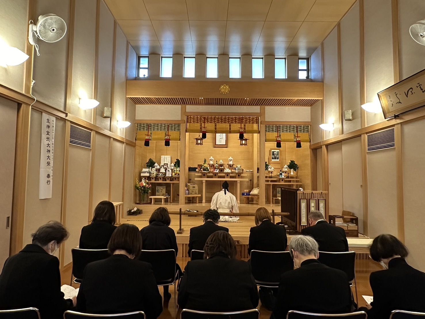 HOME > おひろまえ > おひろまえ 信徒の一年祭仕えられる 2024/11/16 11月16日(土)、今月22日に90才にて亡くなられた信徒の一年一年祭が仕えられた。 家族親族一同、霊としてそれぞれの身の上をお守りくださっている働きに御礼を申し上げ、更にここからの霊の道立てを祈念した。
