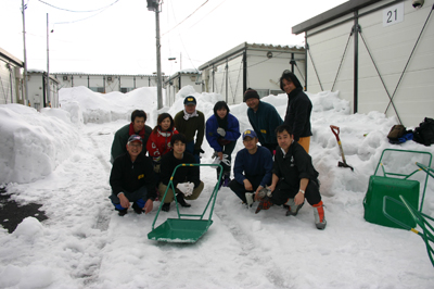 HOME > おひろまえ > おひろまえ 雪ほりボランティア に参加 2006/01/23 金光教首都圏フォーラム主催の「雪ほりボランティア」が1月21日、22日に実施され、副教会長も参加。悠久山仮設住宅周辺の雪の除去作業を行った。なお、22日は天地金乃神様月例祭・月例霊祭が教会長祭主のもと仕えられ、祭典後、御伝記『金光大神』を拝読させていただいた。